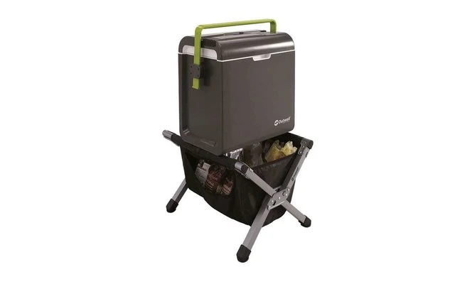 Halterung für Gefrier-/Kühleinheiten mit Aufbewahrungstasche. Auf der praktischen, rutschfesten Auflage des Charlotte Town mit Aufbewahrungstasche lassen sich z. B. Kühlboxen in bequemer Arbeitshöhe abstellen und müssen nicht länger auf dem feuchten Boden stehen. Die Aufbewahrungstasche ist abnehmbar.