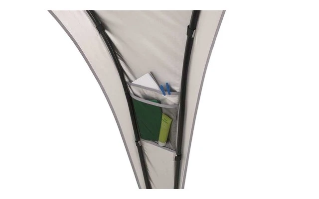 Die Outwell Event Lounge M, L, XL bietet einen vielseitig nutzbaren, frei stehenden Unterschlupf. Die äußerst robuste und stabile Konstruktion zeichnet sich durch große Zugänge und eine bequeme Stehhöhe aus. Dank der Belüftungsöffnung an der Spitze, dem Aufhängepunkt für eine Laterne in der Mitte sowie zwei Netztaschen bietet die Lounge ein Höchstmaß an praktischer Flexibilität. Das Polyester ist mit einer Silber- und Polyurethan (PU)-Beschichtung versehen, sodass es einer Wassersäule von 1500 mm standhält. Um einen größeren geschützten Aufenthaltsbereich zu schaffen, können miteinander kompatible Schutzdächer über eine Regenrinne verbunden werden.